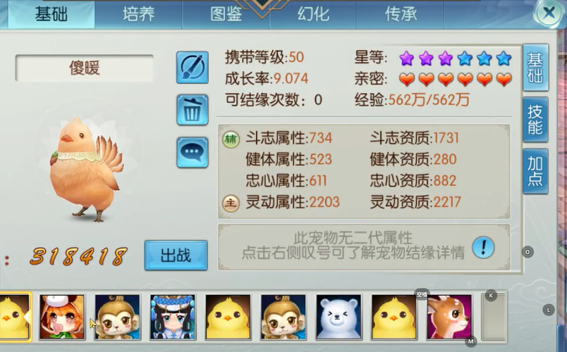 除了角色自身的加点和技能,宠物的搭配与培养也是完善花魁能力的重要一环。宠物选择上,应搭配辅助型宠物来补足短板,例如选择水系宠物来提供额外的治疗和增益效果,或选择增加防御、提供护盾的宠物来强化生存。宠物技能应优先选择能增强治疗效果或减少技能冷却的类别,以放大花魁的核心优势。务必避免选择攻击型宠物,那会浪费职业特性。在技能机制层面,玩家需了解同类型宠物技能最多学习2个、总技能上限为4个的规则,规划技能书的使用顺序,避免核心技能被随机替换。一个优秀的花魁需要玩家通过属性分配、技能选择和实战策略,在游戏设定的职业框架内找到最优解。